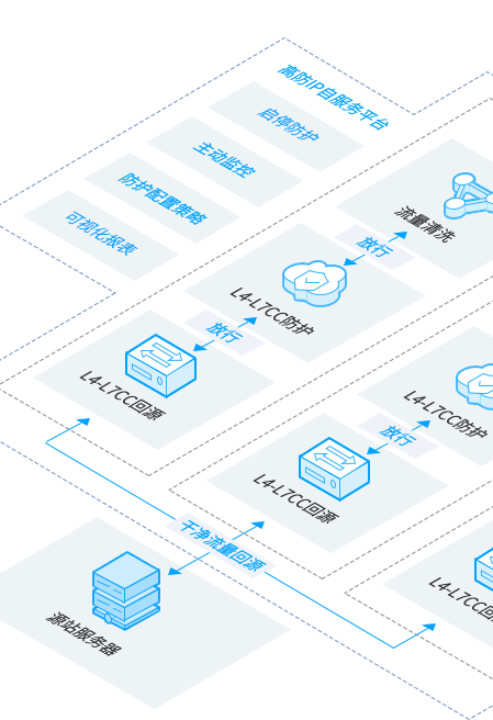 为了防御流量攻击,让网站实时在线,我们提供弹性扩展的安全方案